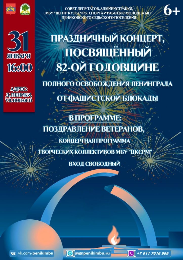Праздничный концерт посвященный 82-й годовщине полного освобождения Ленинграда Опубликовано 22.01.2026 в рубрике Афиша